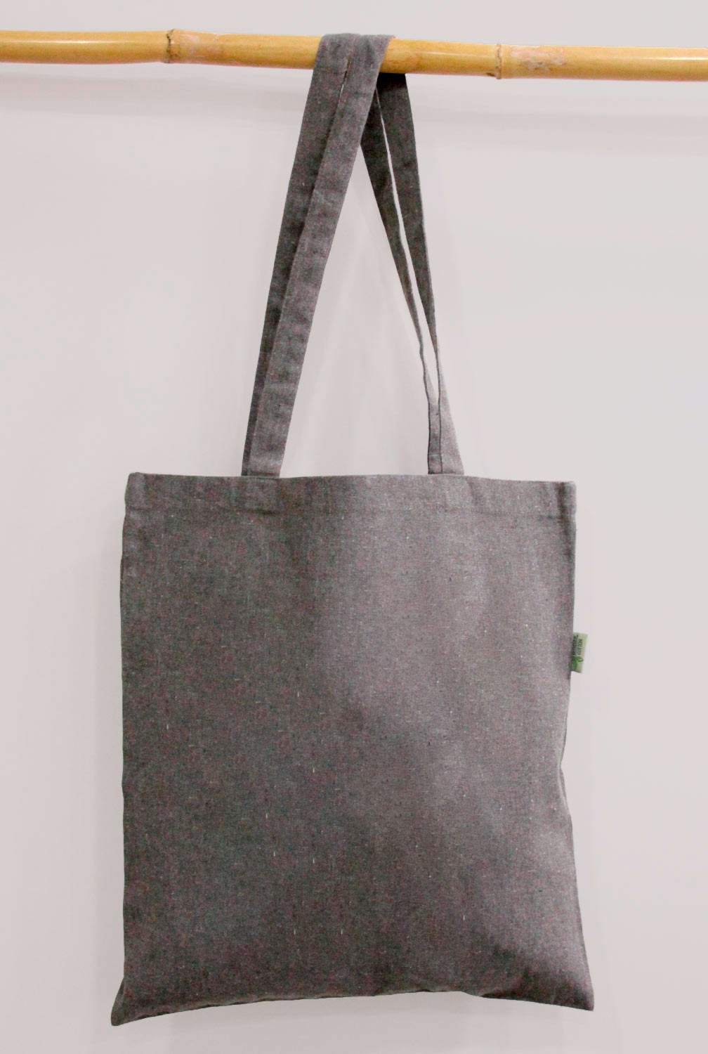 Tote Bag" en coton recyclé avec de longues poignées de 70 cm, et une taille de 38x42 cm. Ces nouveaux sacs fourre-tout recyclés sont fabriqués à partir de coton 100 % recyclé provenant d'autres vêtements ou de produits en coton recyclé.