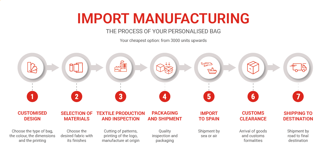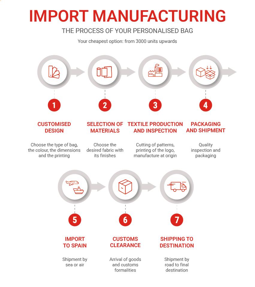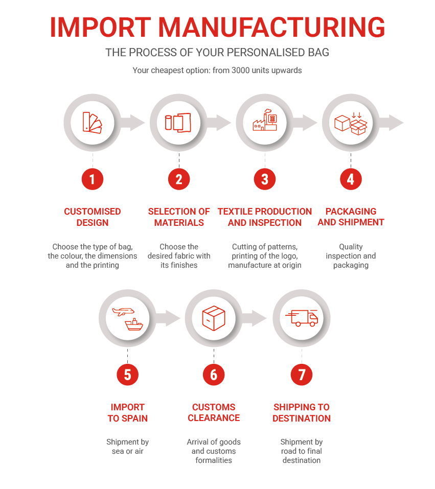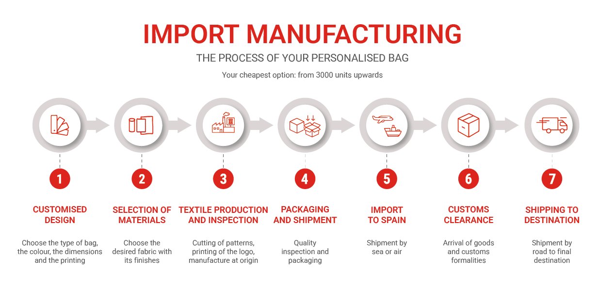 If you are looking for a fully customised promotional bag, with exclusive materials and finishes that make the difference, the import option is the perfect solution.