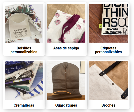 - Customising your bag to your taste for your project implies an increase in cost depending on the customisations you add: Each customisation has an associated cost, depending on the ones you choose, the weight, the surface, if you add a gusset, if you add a label, etc.